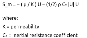 The momentum loss in heat exchanger regions is modeled as: