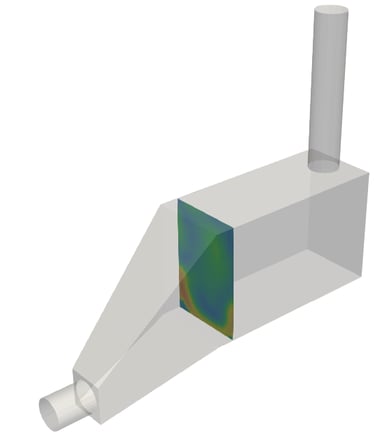 To mitigate this, various configurations of distribution plates and turning vanes were simulated. The CFD results demonstrated that a specific perforated plate porosity (approx. 45-50%) placed in the diffuser section could successfully redistribute the flow.
