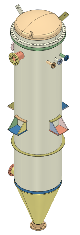 The vessel and nozzles are fabricated from carbon steel pressure vessel material with temperature-dependent properties.