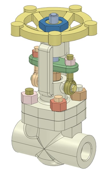 Valve CAD model imported into FEA software