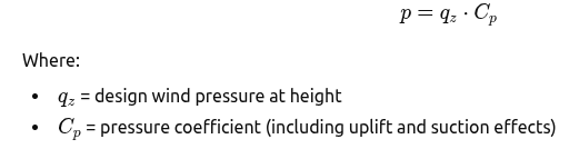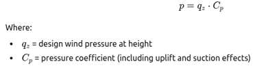 Design wind pressure was calculated using the standard formulation:
