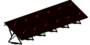 The resulting distributed pressures were applied as equivalent static loads normal to the PV panel surfaces.