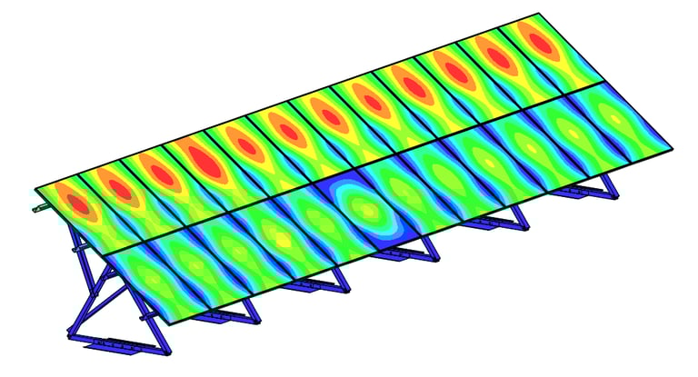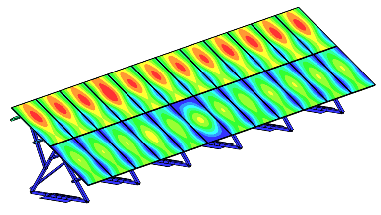 Rooftop PV structures experience complex uplift and pressure effects due to building aerodynamics. Structural verification ensures mounting systems remain secure without excessive deformation or anchor overstress.