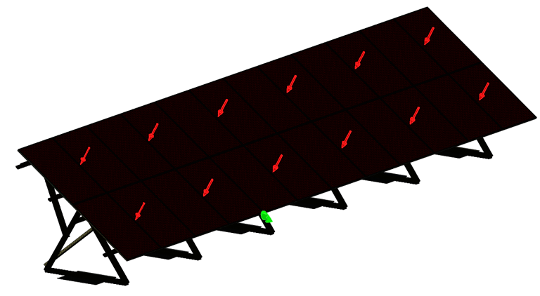 PV modules were represented as pressure-carrying surfaces transferring wind loads into the structural frame.